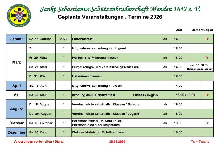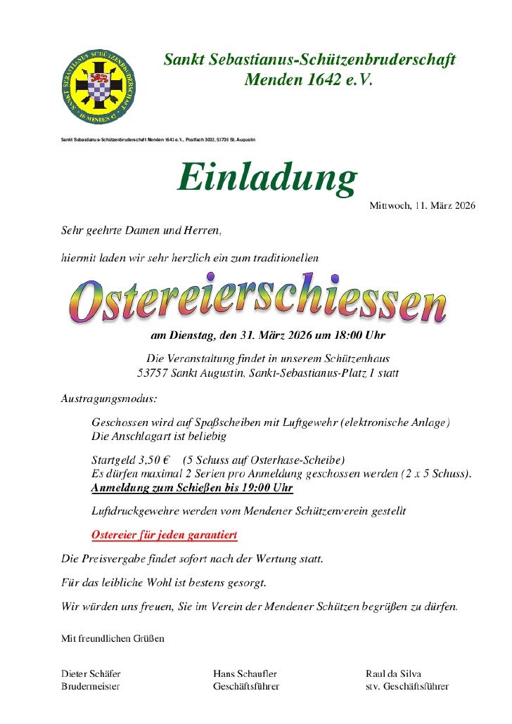 Brudermeister auf den Internetseiten der Schützenbruderschaft Sankt Sebastianus in Sankt Augustin - Menden herzlich begrüßen.