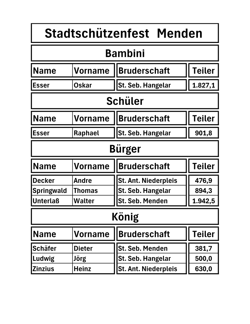 Stadtschützenkönig: Dieter Schäfer – St. Sebastianus Schützenbruderschaft Menden 1642 e.V.